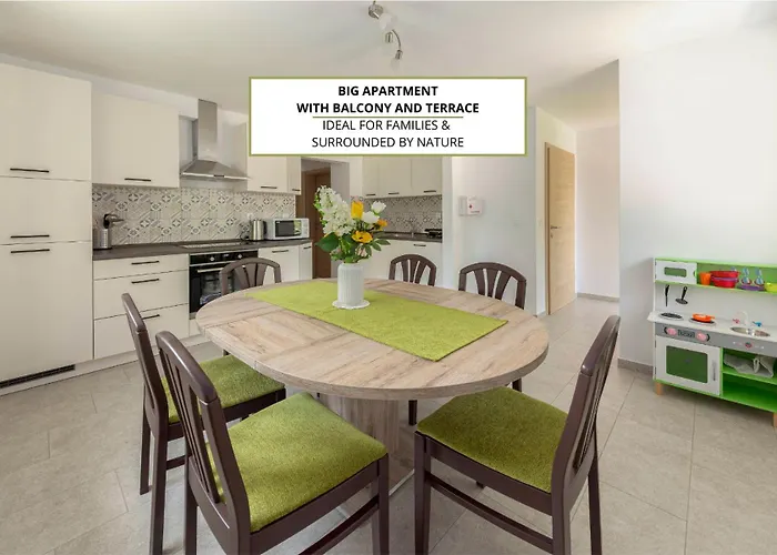 Hisa V Zelenem Daire dairesi, Bled Kalesi'a 2 km mesafedeki bahçe manzarasına sahiptir. Bu 1 yatak odalı dairede 1 banyo odası bulunmaktadır.